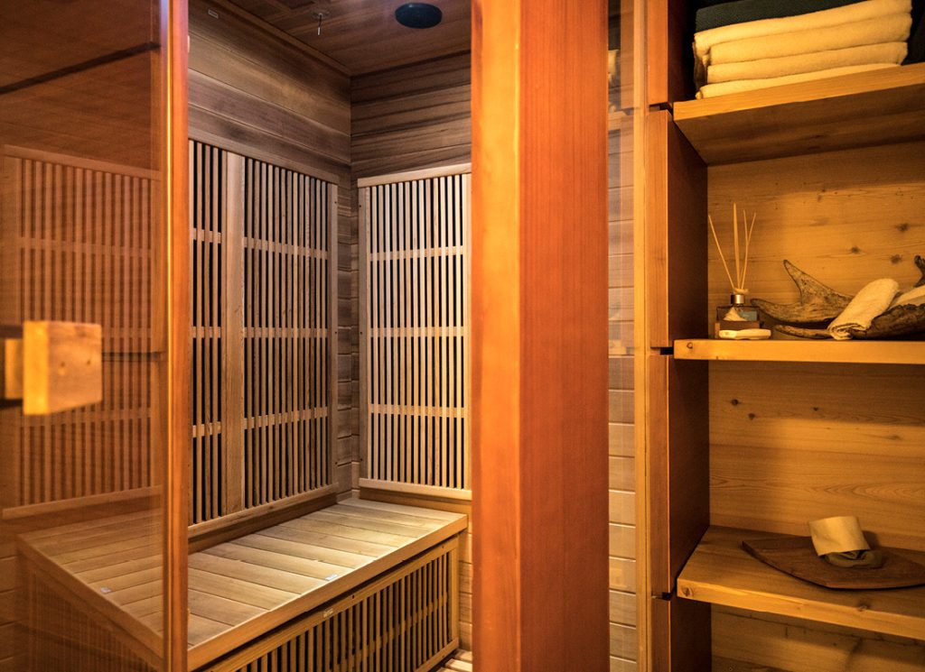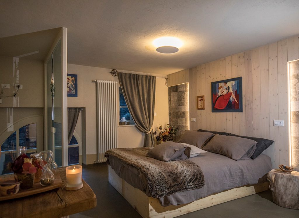 Situata al piano più basso, offre un’atmosfera calda e riservata, ideale per chi cerca silenzio e tranquillità. Su richiesta, è dotata di ingresso indipendente e una piccola area relax con sauna a infrarossi.